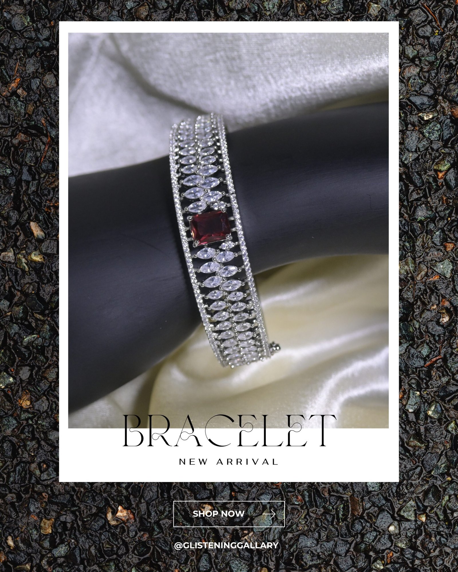 Classic American Diamond Bracelet with Ruby Red Center Stone – Silver Finish – Glistening Gallary