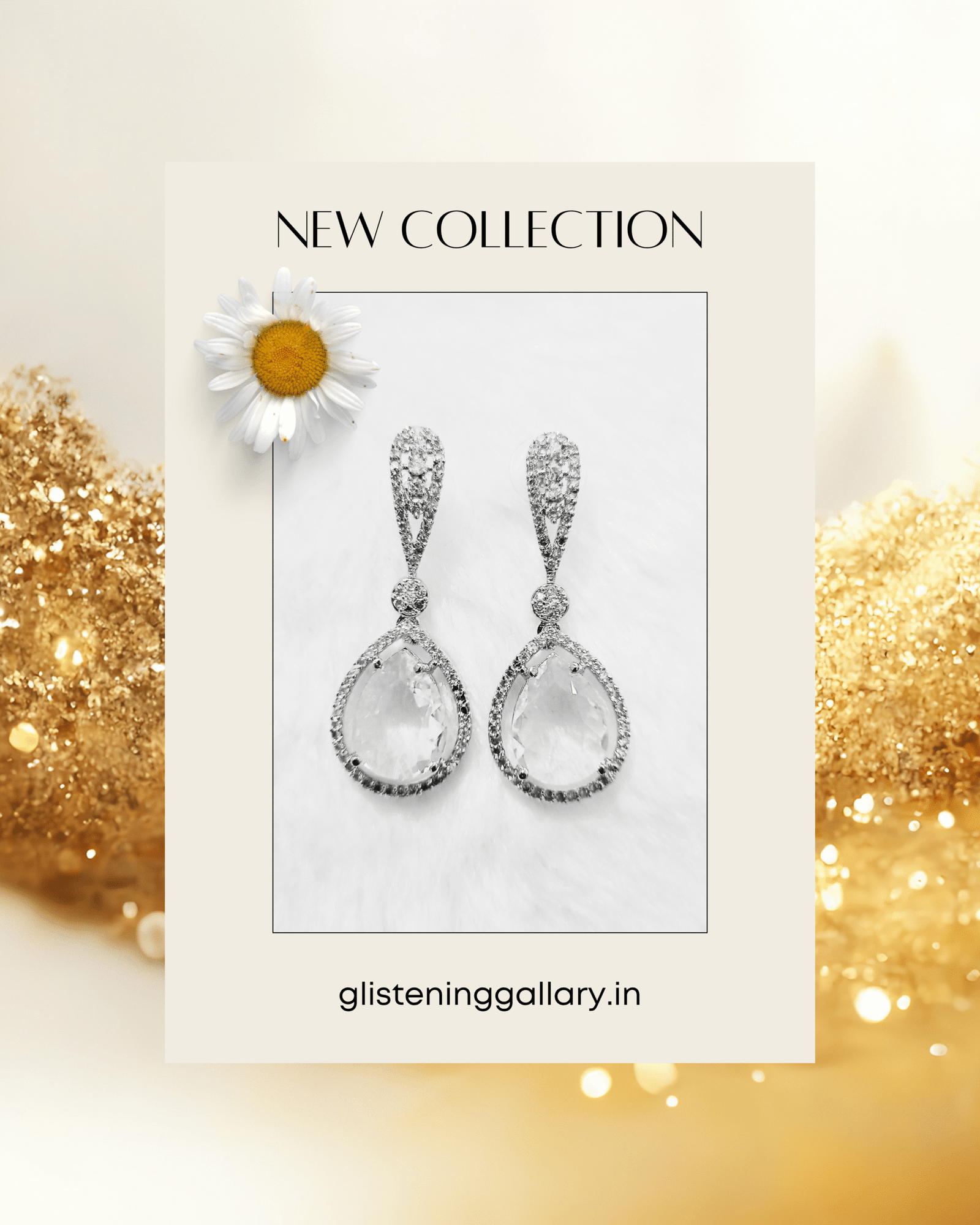 Add a touch of timeless elegance to your look with our Crystal Teardrop Elegance Earrings. Featuring a stunning pear-cut crystal centerpiece surrounded by shimmering micro-stone accents, these drop earrings offer a graceful sparkle perfect for weddings, parties, or evening wear. Crafted with precision and sophistication, this piece belongs to our New Collection and embodies pure luxury and charm.