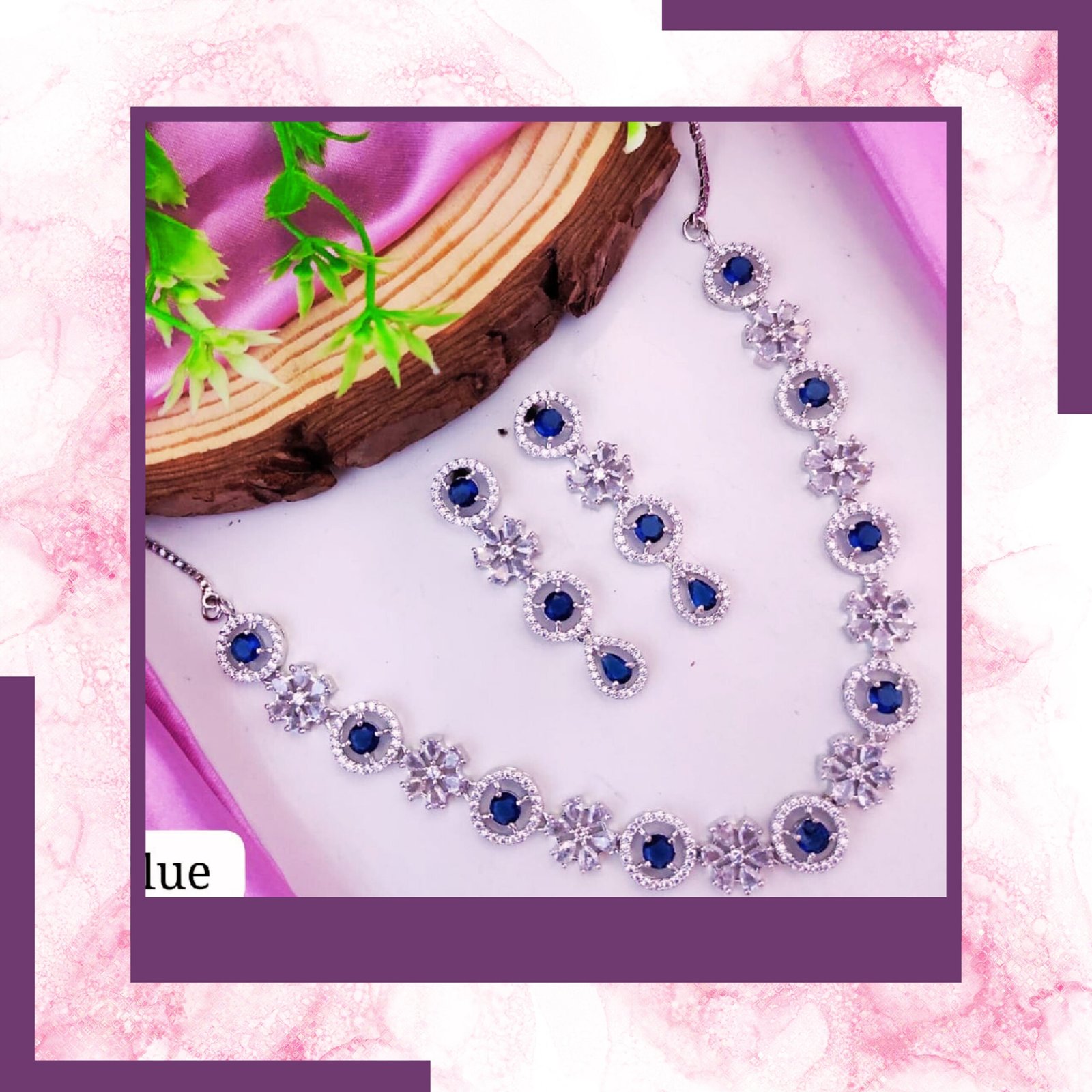 Elegant Floral Blue Stone Necklace & Earring Set β New Arrival