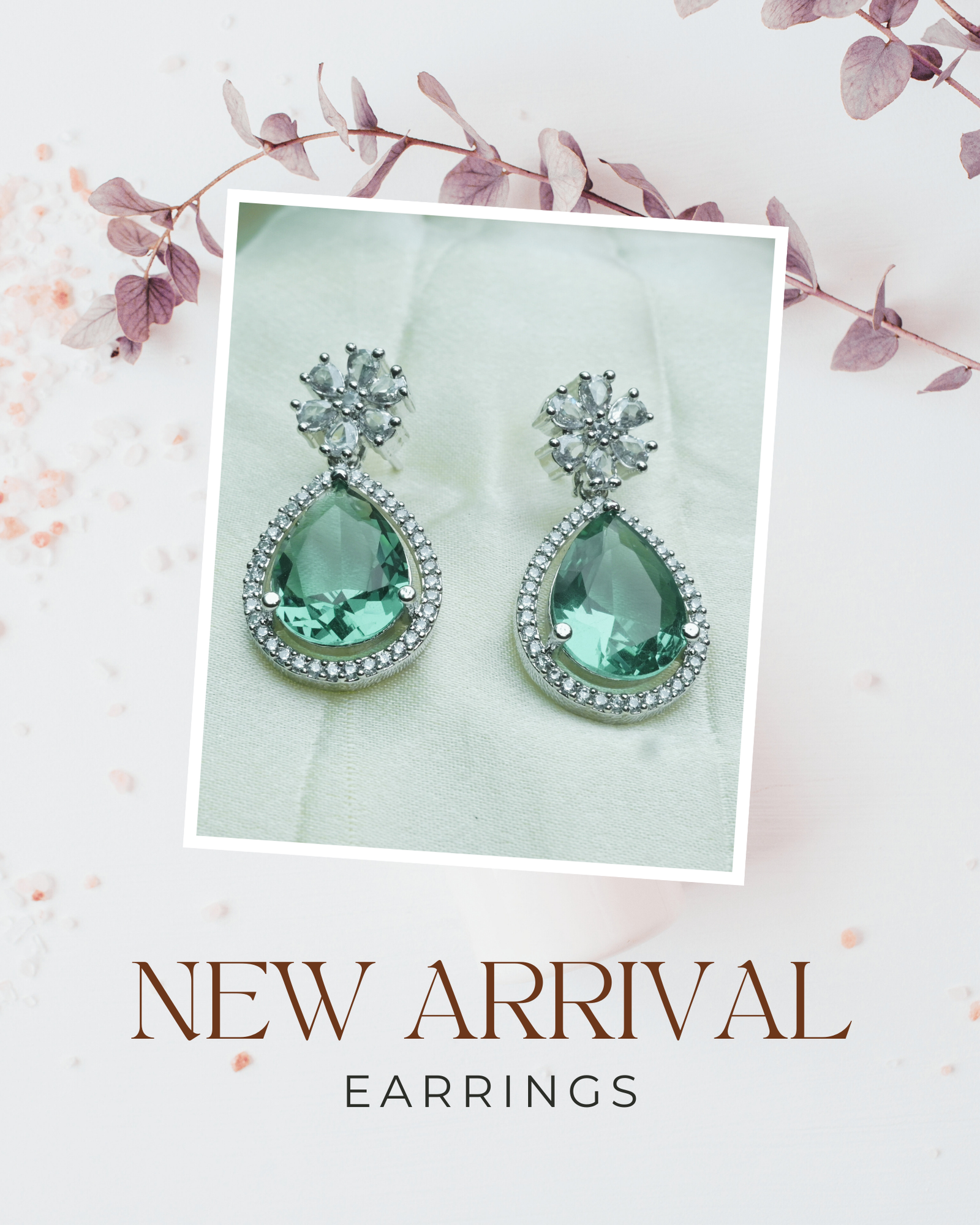 Graceful teardrop earrings featuring a radiant emerald-green crystal framed with sparkling stones and a floral stud top, perfect for adding elegance and freshness to festive, party, and wedding looks. 💚✨