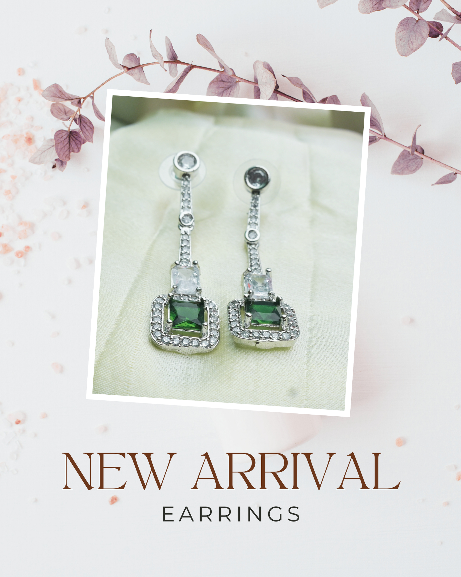 Stylish silver-tone drop earrings featuring a rich emerald-green square crystal framed with sparkling stones and a sleek vertical design, perfect for adding a modern touch to party, festive, and evening looks. 💚✨