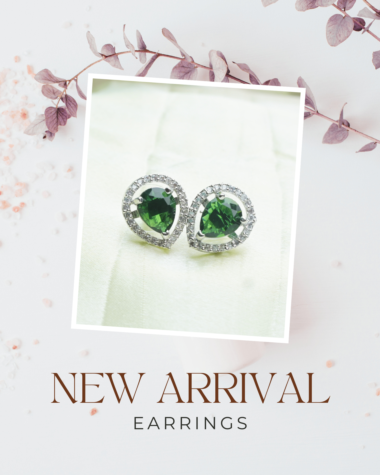 Elegant teardrop-shaped emerald-green studs encircled by a halo of sparkling crystals, offering a refined and graceful shine perfect for festive and evening wear. 💚✨