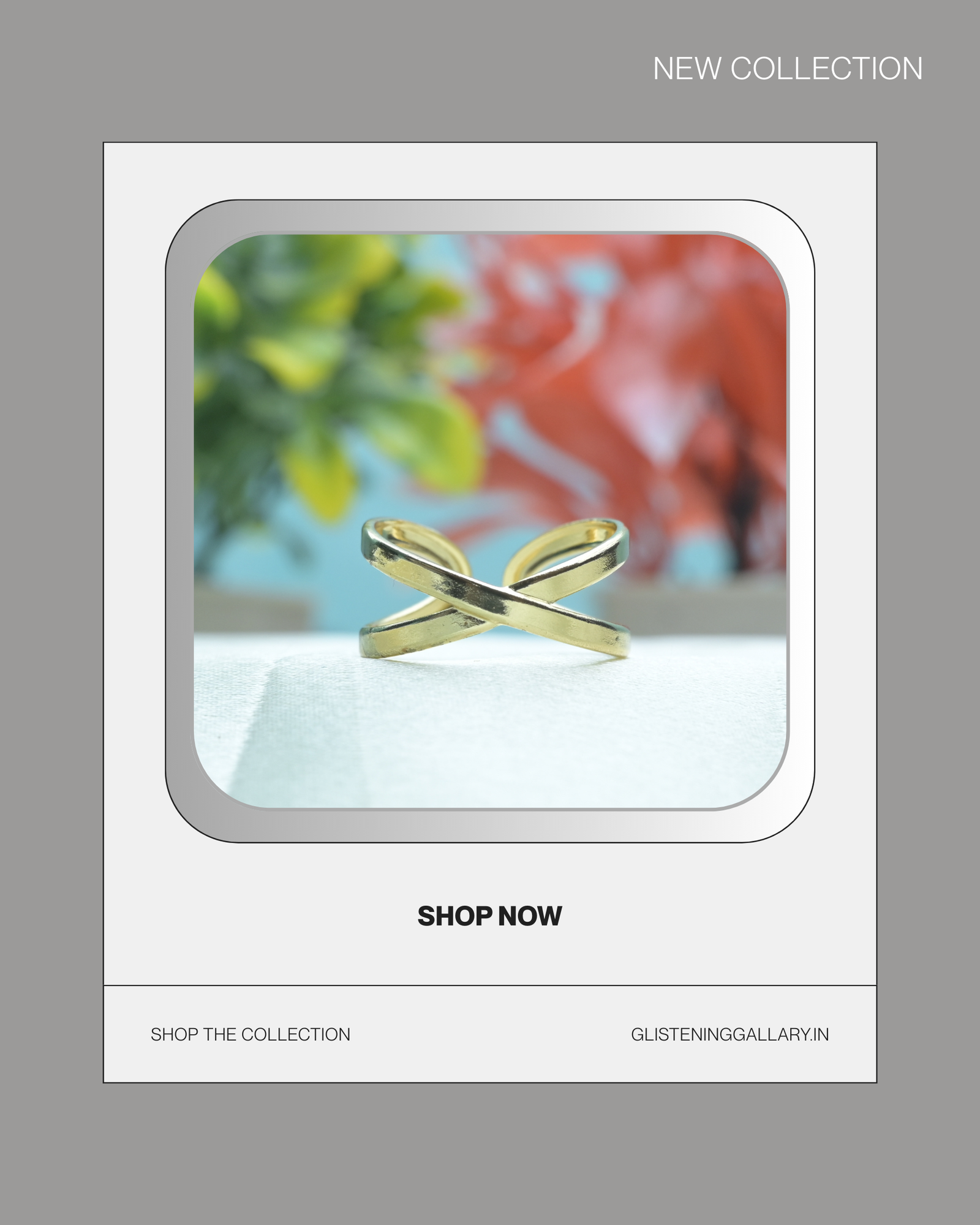 A minimal gold ring with a modern cross-over design — perfect for everyday luxury and effortless style.
