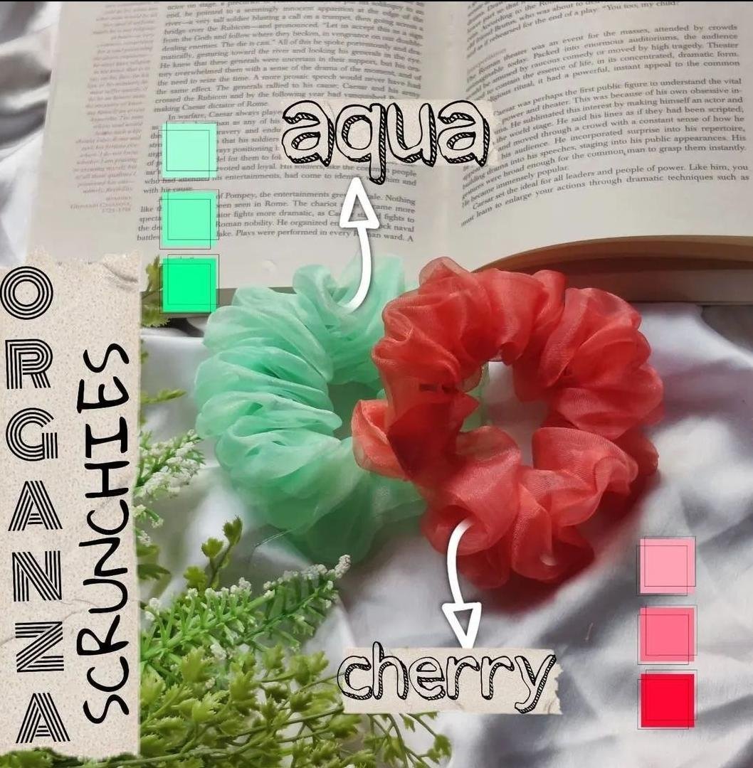 Be the first to review “Organza Hair Scrunchies β Aqua & Cherry Color Set” Cancel reply