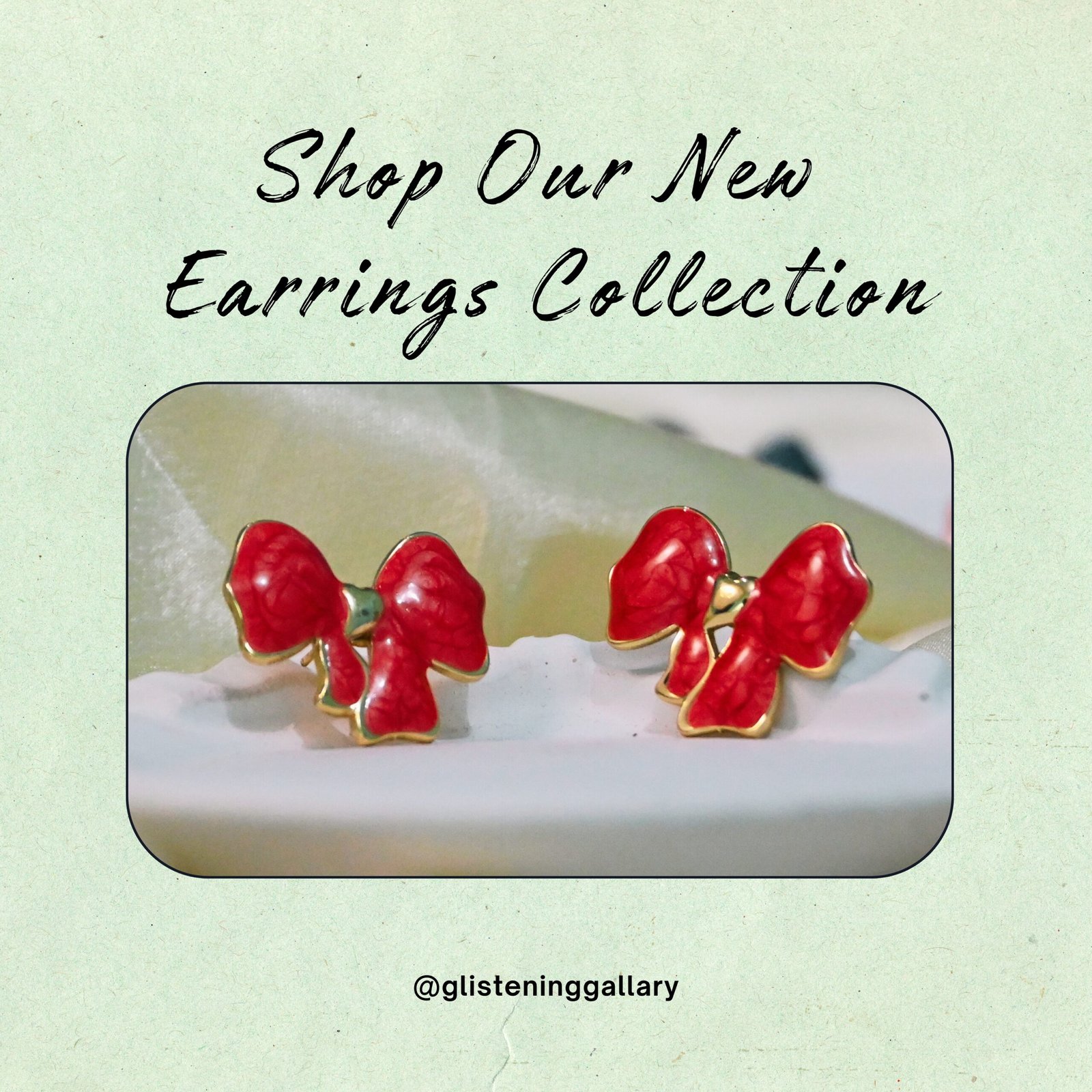 #GlisteningGallary #NewCollection #RedEarrings #BowEarrings #TrendyJewelry #FashionAccessories #ElegantDesign #PartyWearJewelry #StatementStyle #JewelryAddict #ShopNow #StylishEarrings #WomenAccessories #PremiumJewelry #UniqueDesign